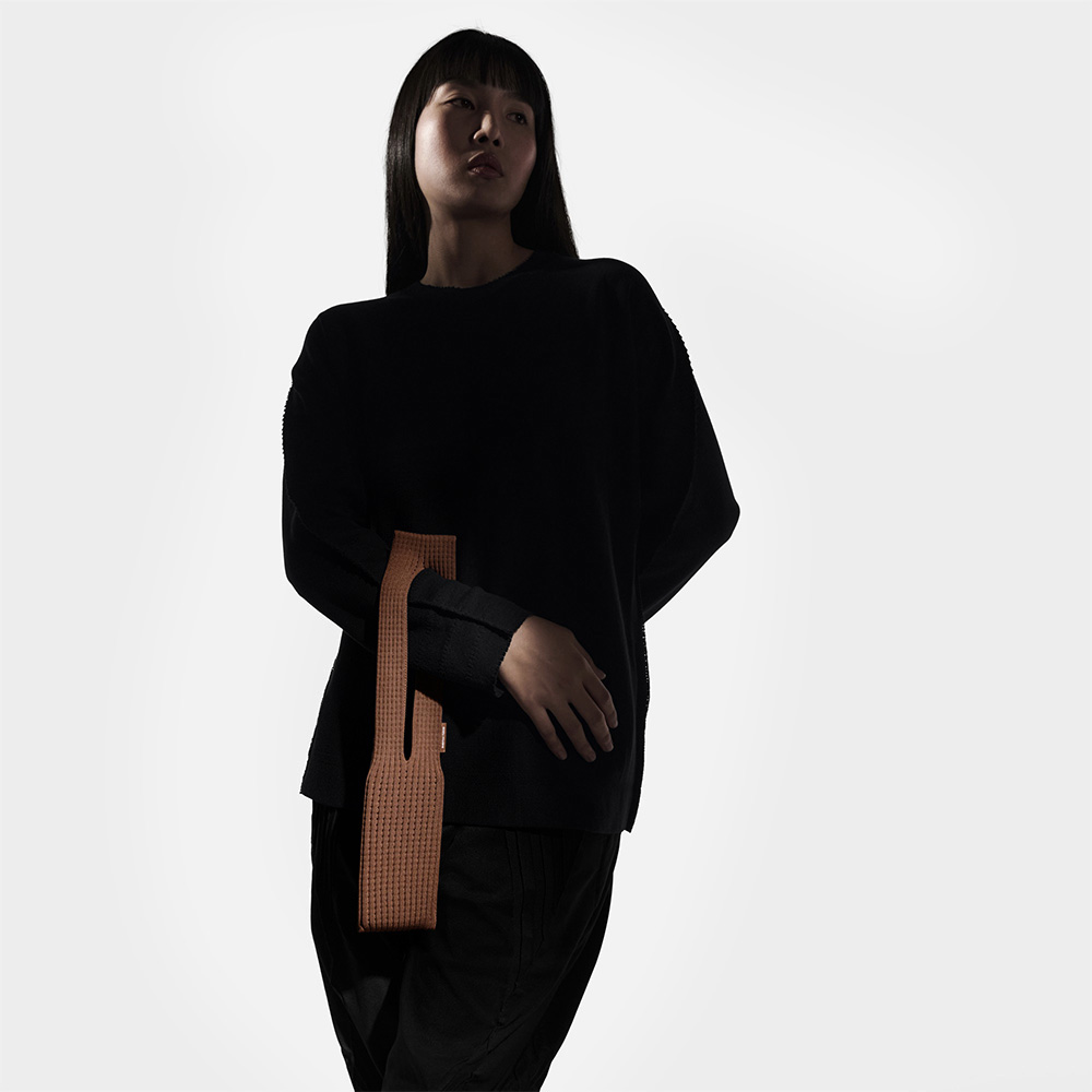 Sa rebrastom mrežastom strukturom koja podseća na plisirane forme džempera, Pocket predstavlja elegantan i praktičan način nošenja i čuvanja telefona.