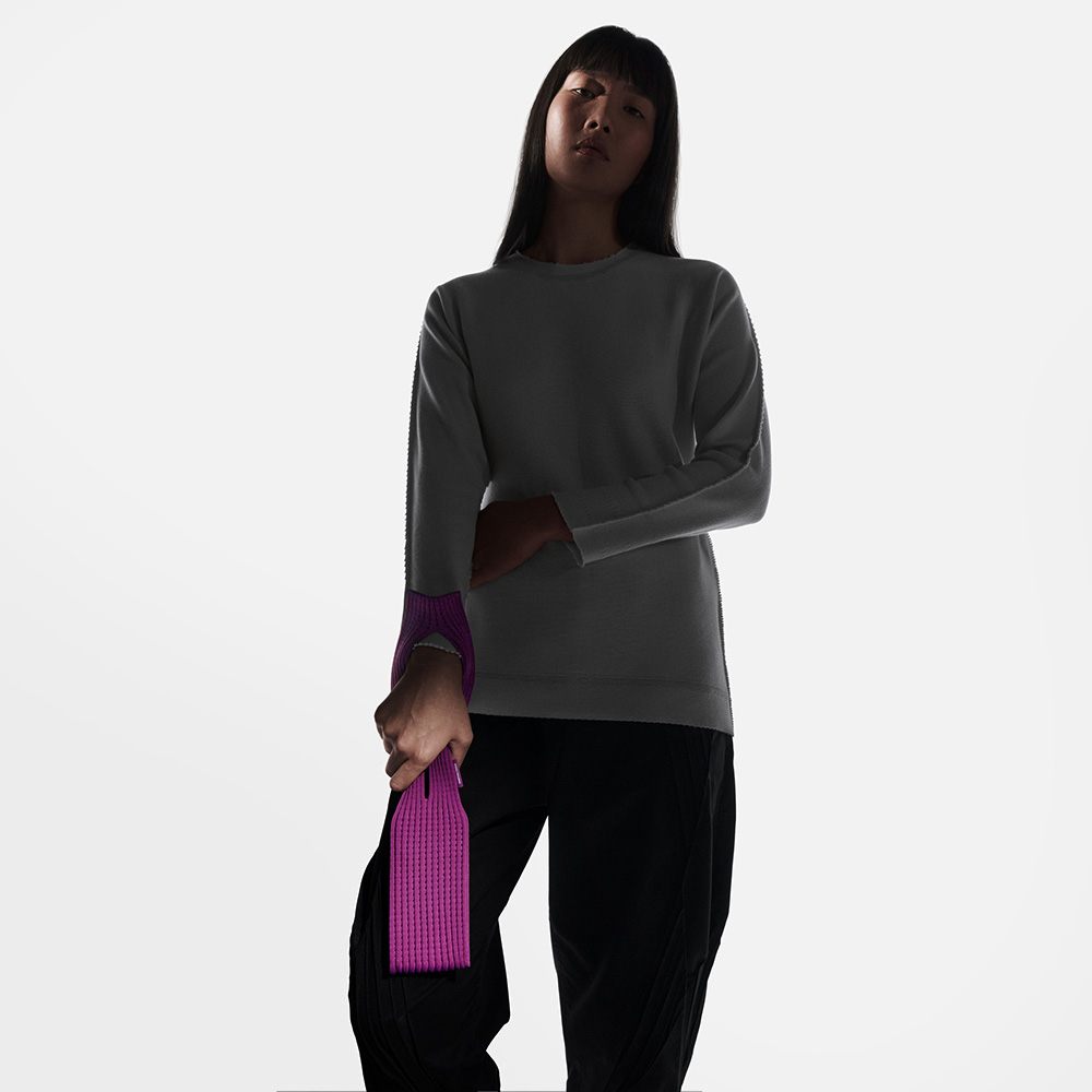 Sa rebrastom mrežastom strukturom koja podseća na plisirane forme džempera, Pocket predstavlja elegantan i praktičan način nošenja i čuvanja telefona.