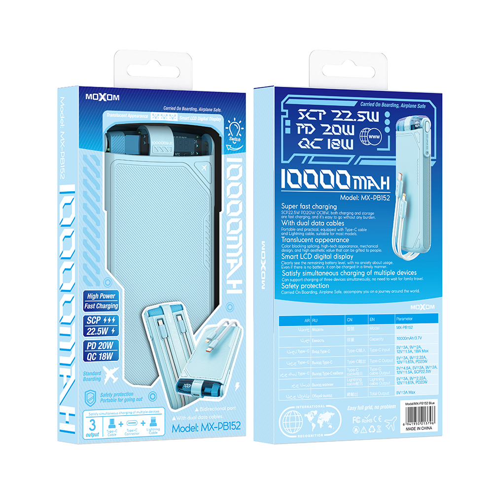 Power bank Moxom MX-PB152 super fast PD20W QC18W SCP22.5W 10000mAh 3A plavi