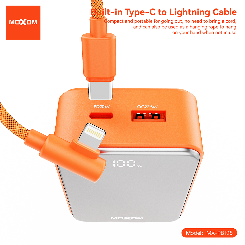 Power Bank Moxom MX-PB195 Mini fast 22.5W Type C – lightning 10000mAh narandzasti