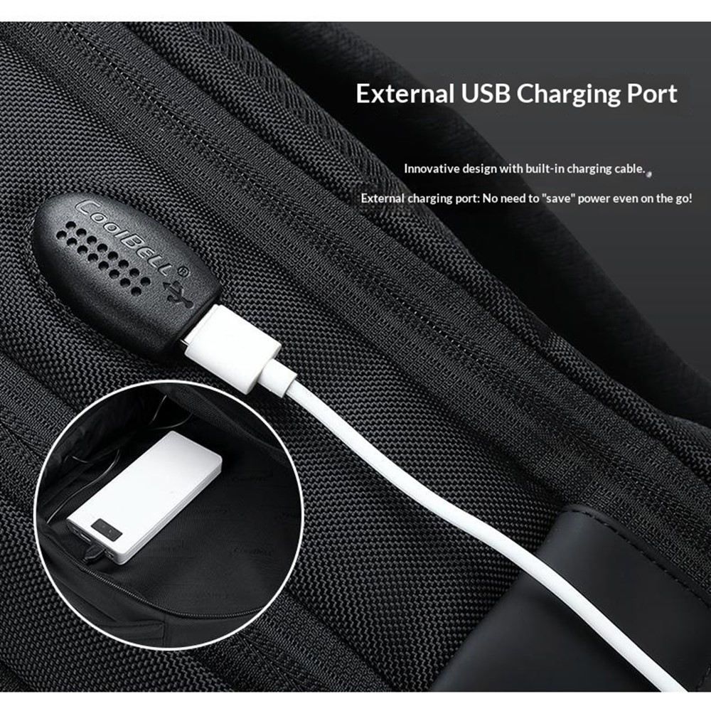 Karakteristike: Vodootporna tkanina, Spoljni USB port za punjenje, Kaiš za prtljag