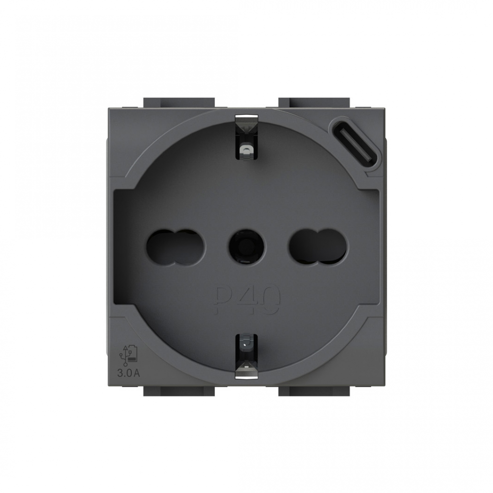 Uticnica USB P40 (1 suko+1 USB C) Vimar Arke crna 4B.V19.P40.USB